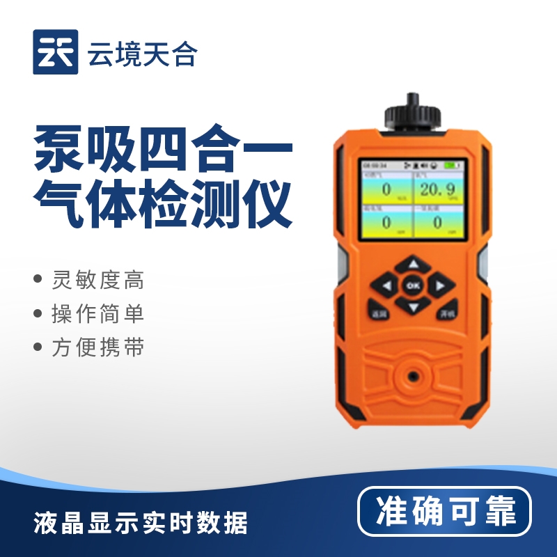 泵吸四合一气体检测仪是一款功能强大、操作便捷的气体检测仪器,它集成了泵吸式采样技术和四合一气体检测功能于一体,能够同时检测并显示四种不同气体的浓度值。该仪器内置了精密的气体蠕动泵,通过主动抽取待测区域的气体样本,实现了快速、准确的检测。它通常配备有电化学、催化燃烧等多种类型的传感器,能够检测氧气、甲烷、一氧化碳、硫化氢等多种常见及有毒有害气体,满足不同行业和场景下的气体检测需求。气体检测仪具有高精度、高稳定性、响应速度快等特点,能够在气体浓度超标时立即发出声光振动报警,提醒用户及时采取措施。同时,它还具备数据存储和传输功能,可自动记录检测数据,并支持USB、RS232或RS485等多种通讯方式,方便用户进行数据管理和分析。此外,该仪器还具备防水防尘、防爆等特性,适用于各种恶劣环境下的气体检测工作。其人性化的设计、易操作的界面以及广泛的适用范围,使得泵吸四合一气体检测仪成为工业生产、环境监测、应急救援等领域的安全检测设备。