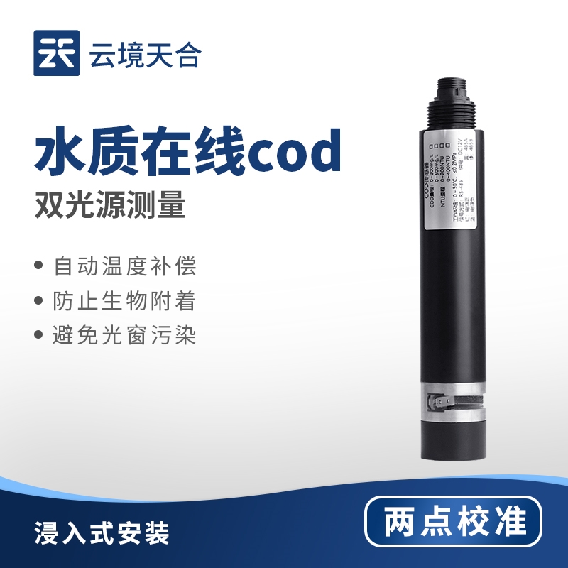 水质在线cod浊度温度传感器采用两路光源进行测量,一路COD测量,一路浊度测量,